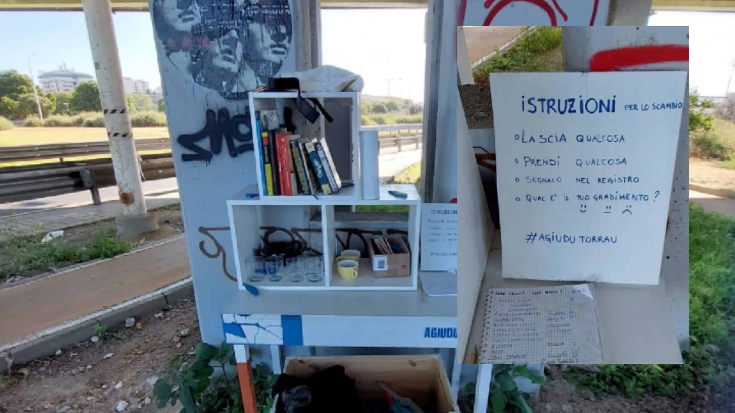 Bicchieri, tazzine, vestiario ma anche libri: “Il tuo superfluo è il necessario di qualcun altro”. Si trova sotto uno dei ponti in direzione Sant’Elia, da anni è un punto di riferimento per chi si trova in estrema difficoltà: mai vandalizzato o scambiato per ecocentro, viene rispettato e condiviso con premura e discrezione. Una penna e un blocco di carta sono riposti sul tavolo dove un piccolo promemoria ricorda le semplici regole da adottare: “Lascia qualcosa, prendi qualcosa, segnalo nel registro”. Anche il feedback è richiesto, in modo tale da valutare la qualità dell’iniziativa.