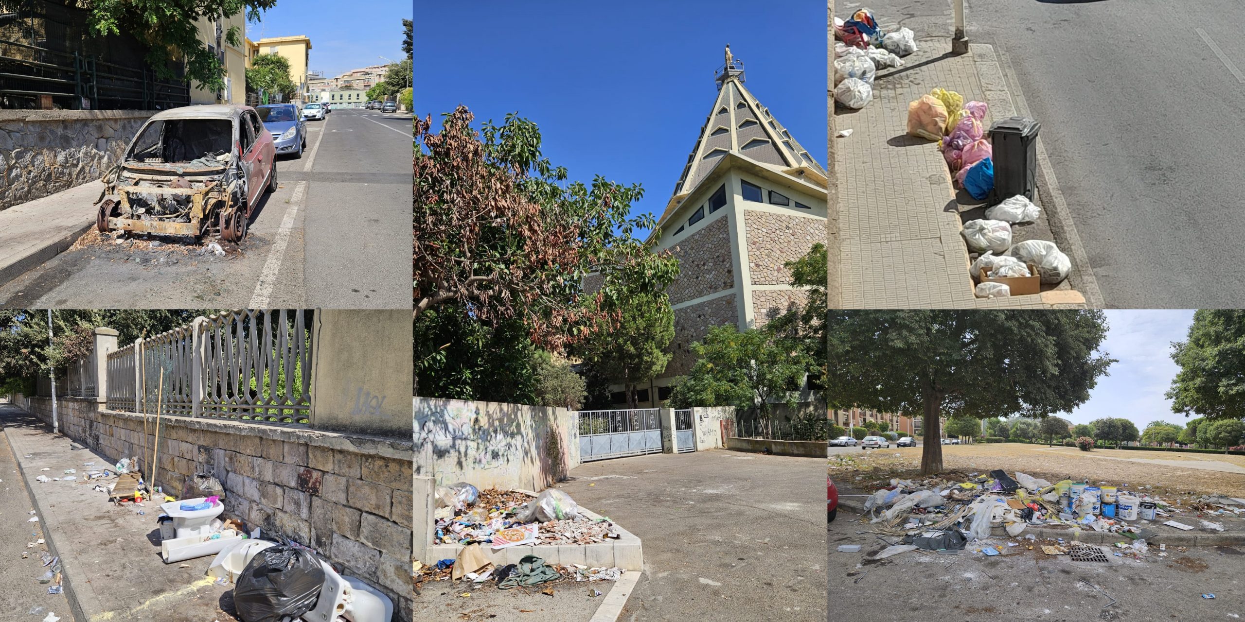Un collage che di certo non è invidiabile e ben lontano dalle cartoline che ritraggono le bellezze del capoluogo sardo: da Mulino Becciu a piazza delle Muse sino a viale La Plaia (tra l’altro al buio la notte, per metà strada, da aprile) lo scenario è sempre lo stesso. Vere e proprie discariche abusive, anche sanitari usati e abbandonati sui marciapiedi. Spunta anche un divano vicino ai raccoglitori dei rifiuti stracolmi di sacchi e la carcassa di una macchina incendiata occupa un parcheggio da chissà quanto tempo. Non solo: ai piedi della chiesa in piazza San Michele cartacce, cassette in legno e addirittura abiti usati sono accatastati in vari angoli ben visibili. I cittadini protestano e segnalano con la speranza che vengano effettuate le bonifiche opportune.