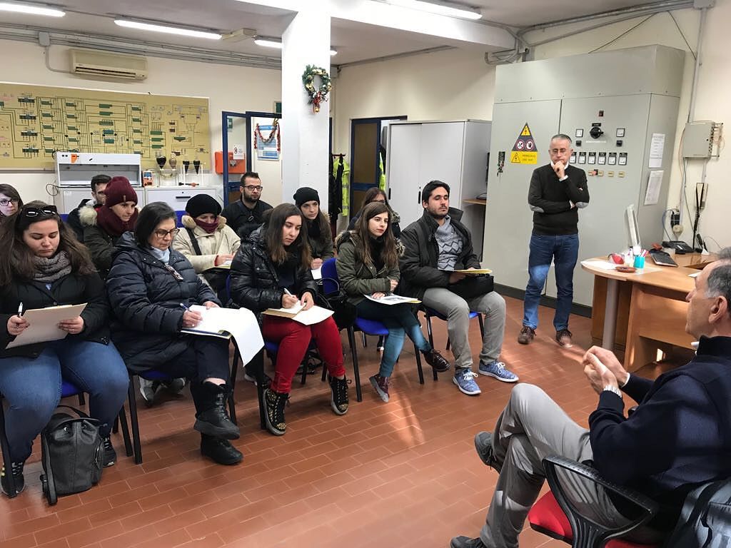 Il percorso dell’acqua. Gli studenti sono stati accompagnati in un percorso che è partito dall’ingresso nella fase di grigliatura e disinfezione dell’acqua grezza, cui seguono le fasi di sedimentazione e di chiariflocculazione, attraverso cui si eliminano le impurità. Il percorso è proseguito verso i filtri a sabbia e verso i filtri a carbone attivo (fasi di affinamento del processo). Infine, agli studenti è stata mostrata la fase di disinfezione finale per assicurare una risorsa garantita che dall’impianto arriva fino ai rubinetti di casa. Ogni momento del percorso è stato accompagnato dalla spiegazione da parte dei tecnici di Abbanoa e da un dibattito continuo fatto di domande e risposte.