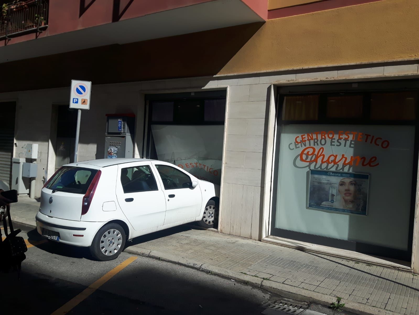 Una giovane di 31 anni, cliente del centro estetico, che in quel momento si trovava sul lettino vicino alla vetrata, è rimasta ferita dal crollo.
