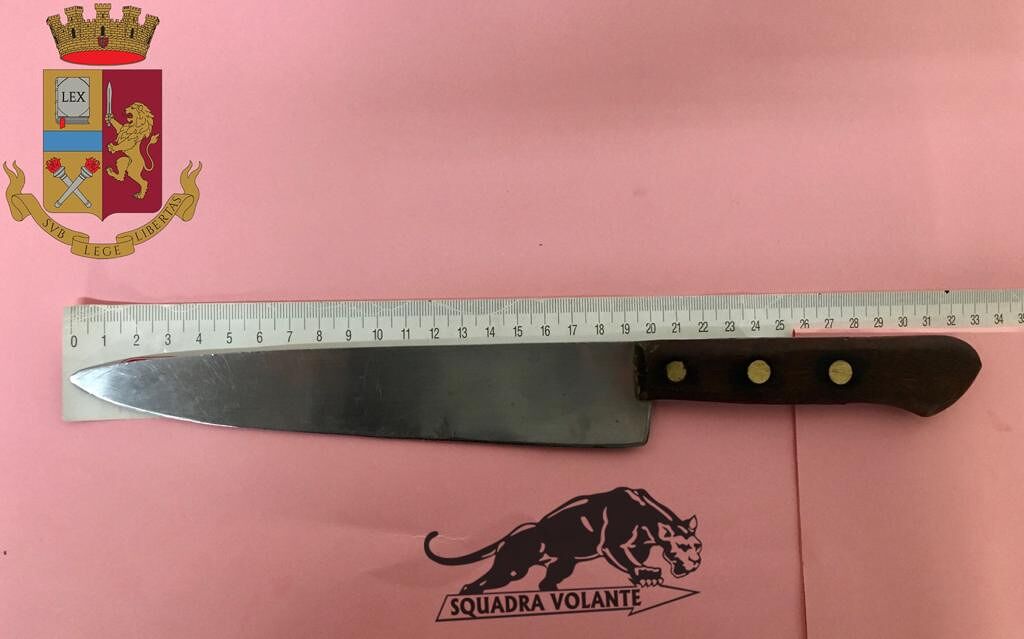 Proprio in un momento di calma tra le parti, quando il dialogo sembrava essere giunto a buon punto e i poliziotti hanno potuto intraprendere le operazioni di identificazione di entrambi, improvvisamente il fratello maggiore, con un gesto fulmineo ha estratto un grosso coltello da cucina, abilmente nascosto sotto gli indumenti, per sferrare un fendente diretto al corpo del fratello minore, che con un balzo all’indietro ha schivato il primo colpo. Il secondo, partito immediatamente dopo nella stessa direzione è stato impedito solo grazie al rapido intervento degli agenti, che hanno bloccato il gesto dell’uomo, il quale è stato subito disarmato.