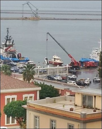 Momenti di grande paura questo pomeriggio al porto di Cagliari. Un’auto con una donna alla guida è finita in acqua, cadendo dalla banchina. Non un incidente, come inizialmente si era pensato: la conducente volutamente si è lanciata con la vettura in mare. Sul posto, per salvarla, sono intervenuti i sommozzatori dei Vigili del Fuoco, che l’hanno tirata su. La donna è in gravi condizioni, ricoverata in Rianimazione. Nella foto vedete il momento del recupero da parte dei vigili del fuoco. La Punto bianca è stata risollevata e la donna è stata miracolosamente rianimata sul posto. Si tratta di una 36enne di Assemini.