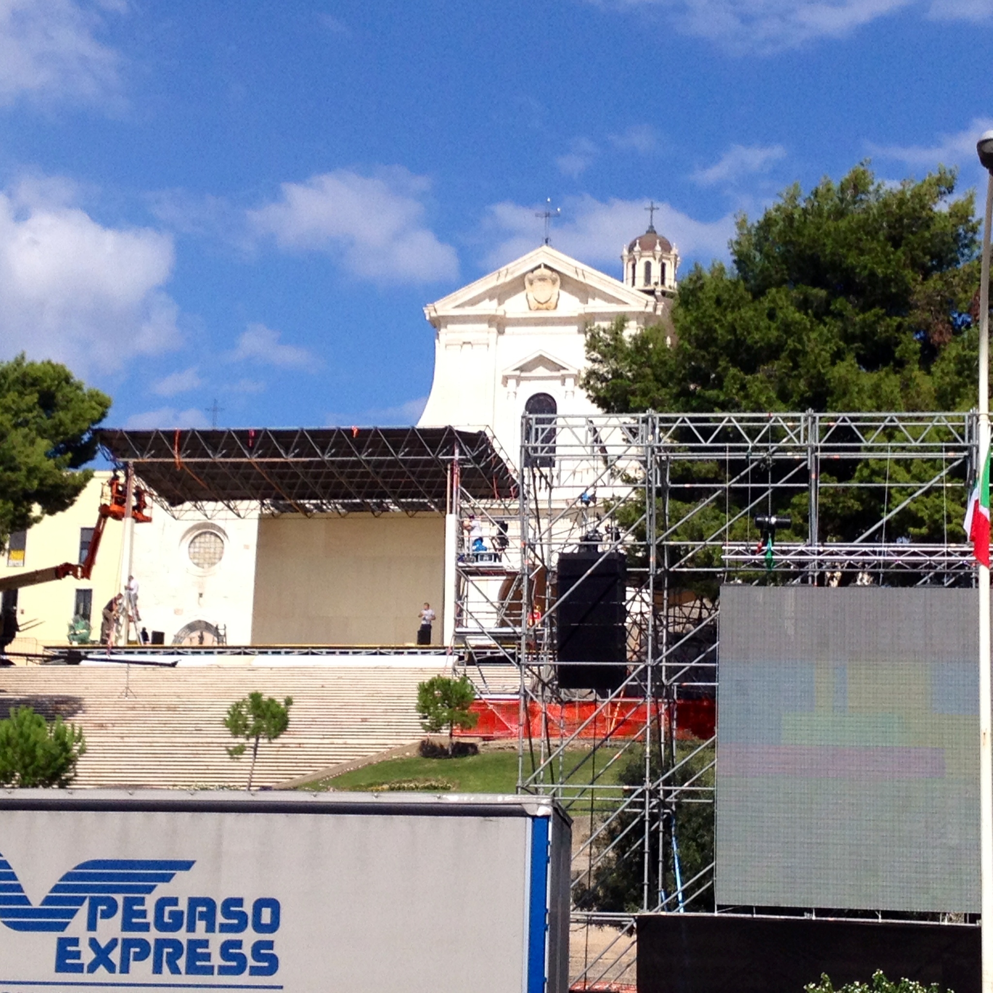 È grande l’attesa per l’arrivo di Papa Francesco e proseguono i lavori nel sagrato della Basilica di Bonaria per accogliere il Santo Padre in sicurezza. L’organizzazione sta affrontando tutte le problematiche relative alle strutture e si registra qualche ritardo sulla tabella di marcia. Si respira l’atmosfera delle grande occasioni e fervono i preparativi intorno al palco per consentire lo svolgimento dell’Angelus con tutti gli spazi organizzati per permettere a Papa Francesco un percorso agile in previsione del rituale saluto ai presenti in tutti settori.