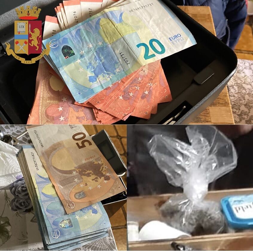 Una volta accertato il “modus operandi”, i poliziotti della squadra mobile hanno predisposto un servizio che consentisse di sorprendere al momento opportuno lo spacciatore. L’uomo è stato fermato mentre stava per uscire di casa. Dal controllo esteso presso l’abitazione effettuato con la collaborazione del nucleo cinofili della Guardia di Finanza, in una delle stanze sono stati trovati circa 50 grammi di marijuana, ben nascosti all’interno di una cassetta in legno per bottiglie di vino, un bilancino di precisione e tutto il materiale utile al confezionamento. Inoltre, grazie al fiuto dei cani Grizzly e Demon, uno dei quali addestrato proprio per la ricerca di banconote, è stata rinvenuta la somma di circa 9mila euro, probabile provento dell’attività illecita, parte di essi avvolti nella carta stagnola e nascosti in un intercapedine tra le doghe del letto. Il 43enne è stato accompagnato in questura in stato di arresto ed è stato presentato all’udienza di convalida con rito direttissimo.