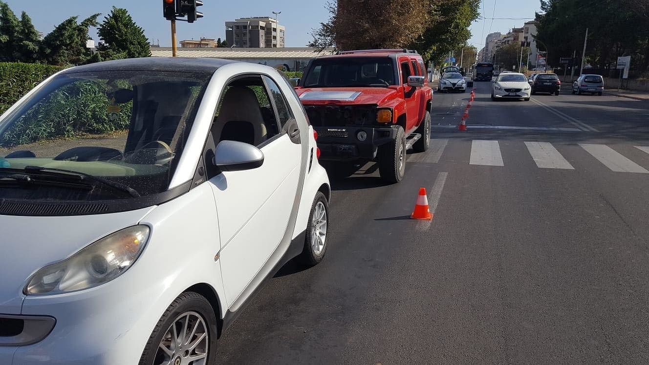 Incidente stradale questa sera nel viale Marconi all’altezza della scuola “Foscolo”. Una Hummer H3 guidata da un 48enne di Sant’Antioco diretto verso Quartu, ha tamponato violentemente una Smart condotta da una 28enne cagliaritana che lo precedeva. A causa del forte urto la ragazza è rimasta ferita. Soccorsa da un’ambulanza del 118 è stata trasportata al Pronto Soccorso dell’ospedale Marino con assegnato codice giallo. Sul posto la Polizia Municipale per i rilievi del caso.
