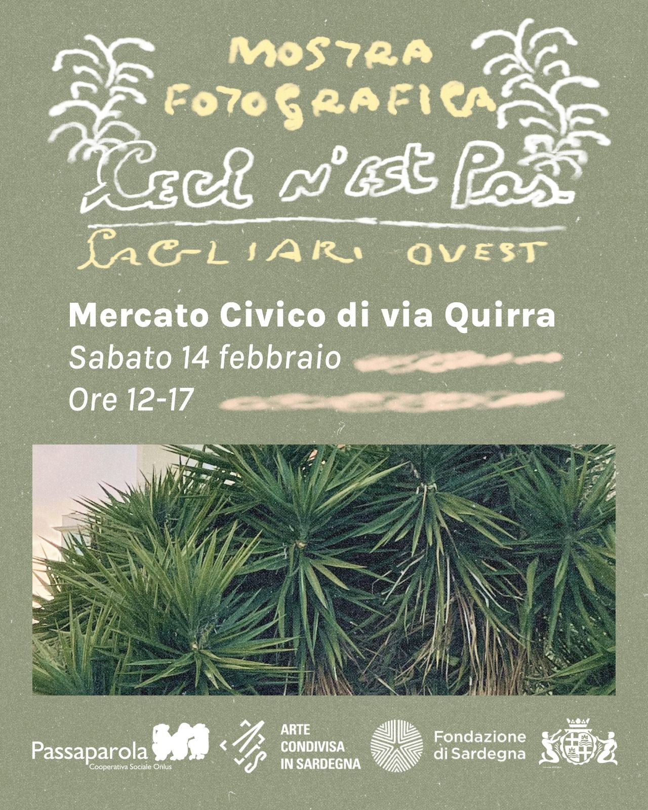 Nel quartiere di Is Mirrionis, in via Quirra, sabato 14 febbraio inaugura la mostra fotografica “Ceci n’est pas Cagliari Ovest”. Il progetto nasce dal coinvolgimento di professionisti, artisti e adolescenti del Centro di quartiere Strakrash ed è patrocinato dal Comune di Cagliari. L’iniziativa è finanziata dalla piattaforma AR/S – Arte Condivisa della Fondazione di Sardegna e prodotta insieme alla cooperativa onlus Passaparola.