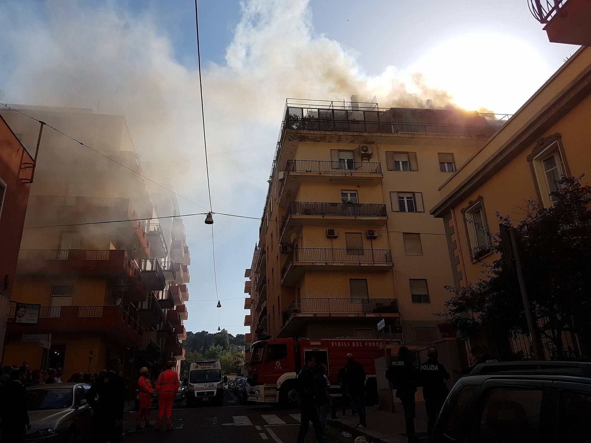 Incendio in via Lombardia a Cagliari, fiamme all’ultimo piano di una palazzina: sul posto stanno intervenendo i vigili del fuoco. Potrebbe essere stata l’esplosione di una bombola a provocare le fiamme, visto che i residenti hanno sentito un rumore fortissimo. sirene spiegate e pomeriggio di paura nel quartiere La Vega e nella vicina is Mirrionis. Sul posto tre ambulanze e ben 4 squadre dei vigili del fuoco. (foto Gianluca Capobianco). Guardate il VIDEO del nostro lettore Allaw.