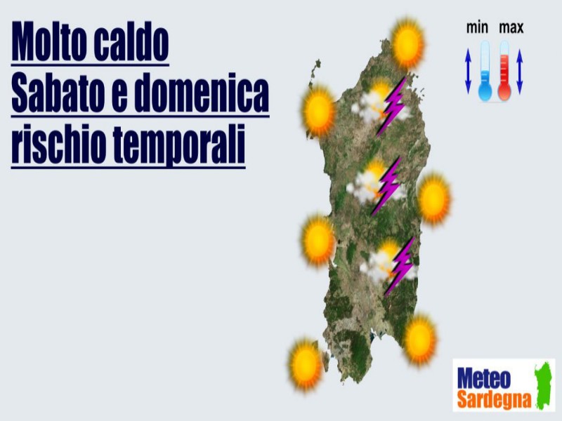 Qualcosa cambierà verso il prossimo fine settimana, quando si manifesterà una debole fase di instabilità atmosferica che andrà a favorire la formazione di isolati temporali nelle zone interne. Questi si formeranno soprattutto a ridosso delle aree montuose principali, ma non sono attesi fenomeni di particolare intensità, anche se la notevole energia disponibile potrebbe innescare qualche fenomeno più intenso del solito. I temporali non produrranno alcun refrigerio nelle aree che non ne saranno coinvolte, e comunque in media le piogge interesseranno aree estremamente ristrette, e solo per qualche ora si potrà usufruire di un calo termico, poi la temperatura dal giorno dopo sarà del tutto simile a quello del giorno precedente. Leggi tutti gli altri dettagli su https://www.meteosardegna.it/