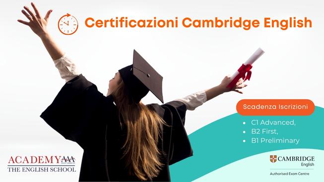Si avvicina il termine per le iscrizioni agli esami Cambridge English presso L’Academy, l’unico Centro ufficiale autorizzato a Cagliari e per il Sud Sardegna per lo svolgimento delle certificazioni internazionali Cambridge English. I candidati interessati a sostenere gli esami per ottenere il certificato per il livello C1 Advanced, B2 First o B1 Preliminary possono consultare le date complete ed effettuare l’iscrizione, al seguente indirizzo web: