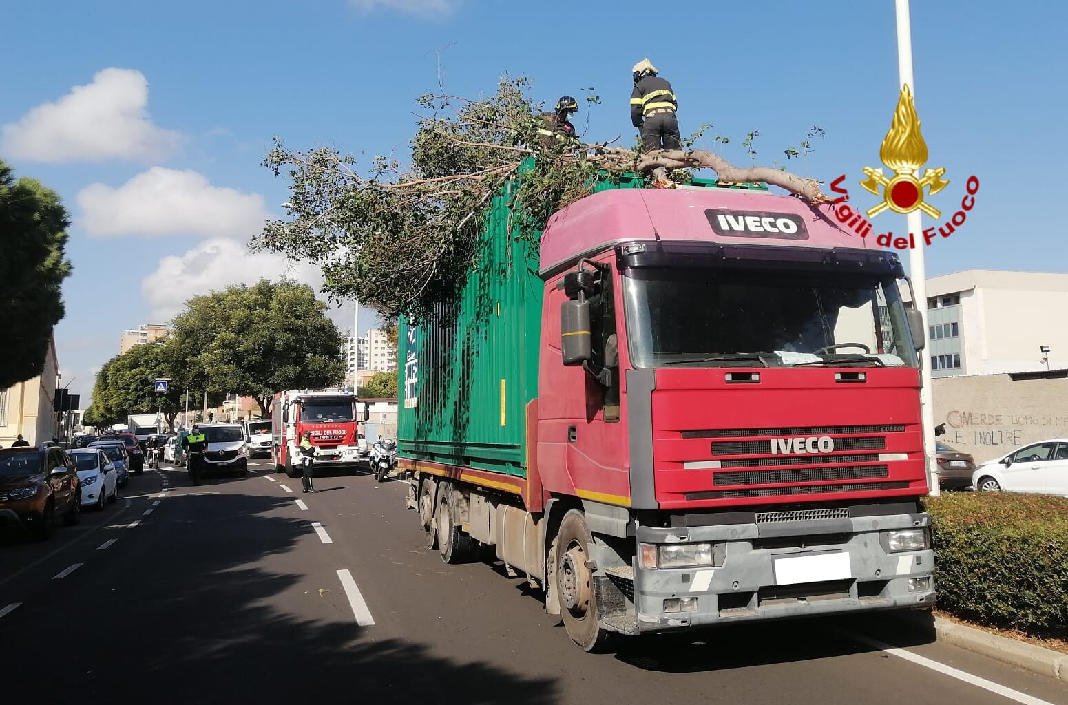 Paura in viale Colombo a Cagliari per un camion che è andato a sbattere contro un grosso ramo di un albero. Sul posto sono intervenuti i Vigili del fuoco del comando provinciale: il guidatore, rimasto fortunatamente illeso, è stato soccorso. Lievi danni per il mezzo. I pompieri hanno tagliato il grosso ramo e, nel giro di pochi minuti, la strada è stata riaperta al traffico. Sul posto. dall’inizio alla fine dell’intervento, presenti anche gli agenti della polizia Locale di Cagliari per gestire la viabilità e per gli accertamenti e i rilievi di competenza.