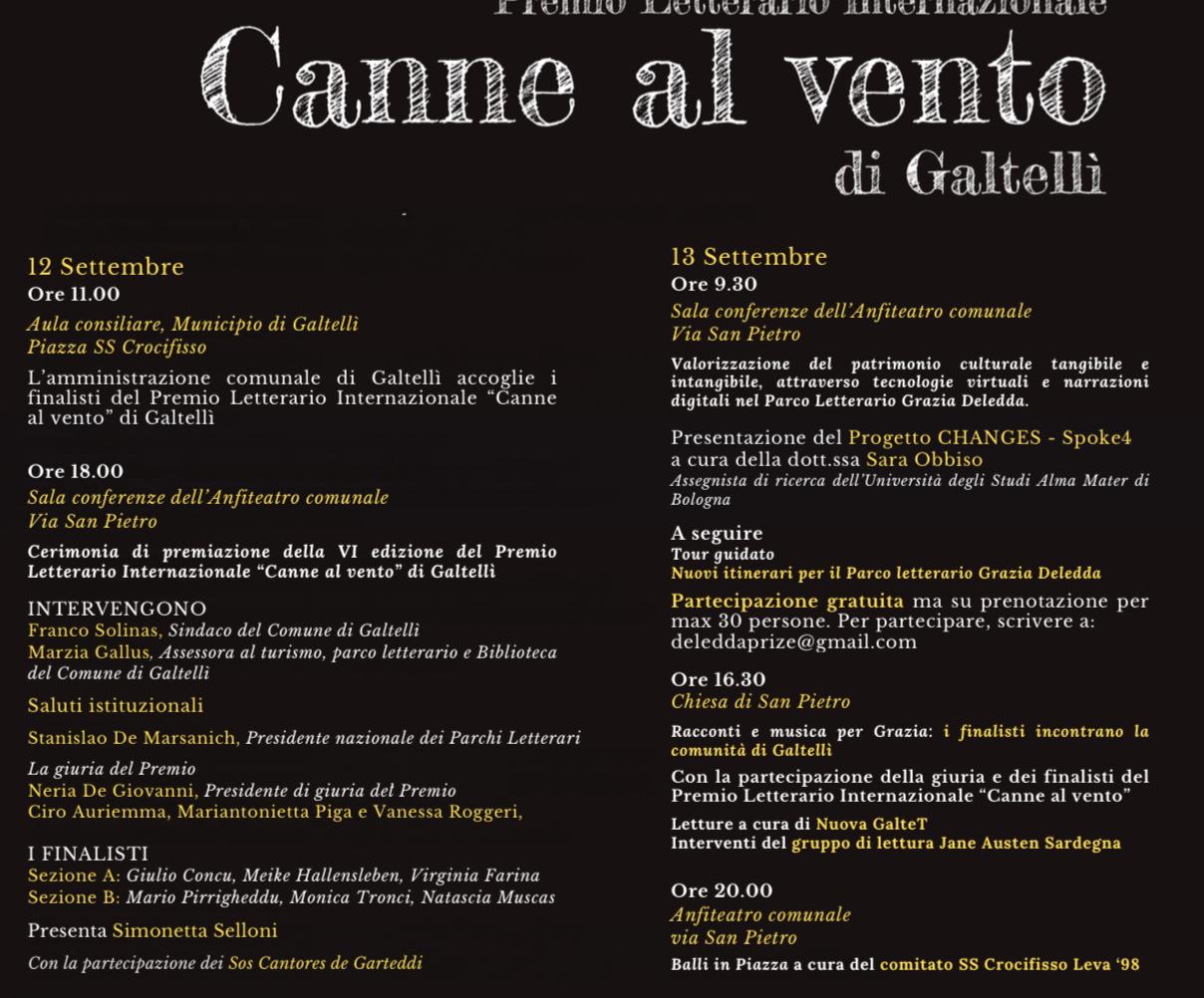 Due giorni ricchi di appuntamenti prima di decretare i vincitori dell’edizione 2025 del Premio letterario internazionale Canne al vento di Galtellì, concorso promosso dal Comune di Galtellì in omaggio alla scrittrice premio Nobel Grazia Deledda, con il contributo dell’assessorato regionale alla Cultura, e la collaborazione del Club Jane Austen.
