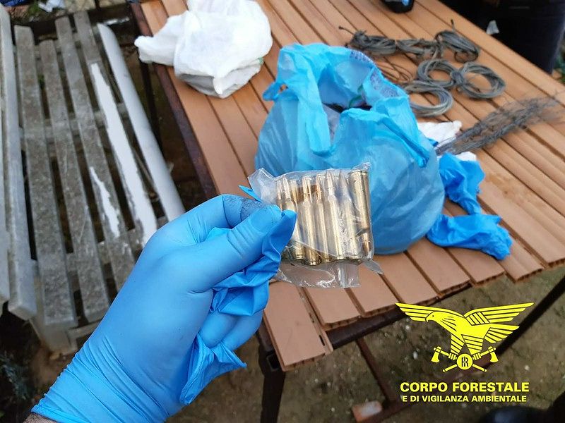 Dopo il fermo sono state eseguite le perquisizioni nei diversi nascondigli individuati, tra cui anche un anfratto roccioso, nel quale si rinvenivano lacci per catturare cervi e cinghiali, reti per l’uccellagione, nonché 96 munizioni costituite da cartucce caricate a pallettoni e da proiettili di fucile calibro 273.