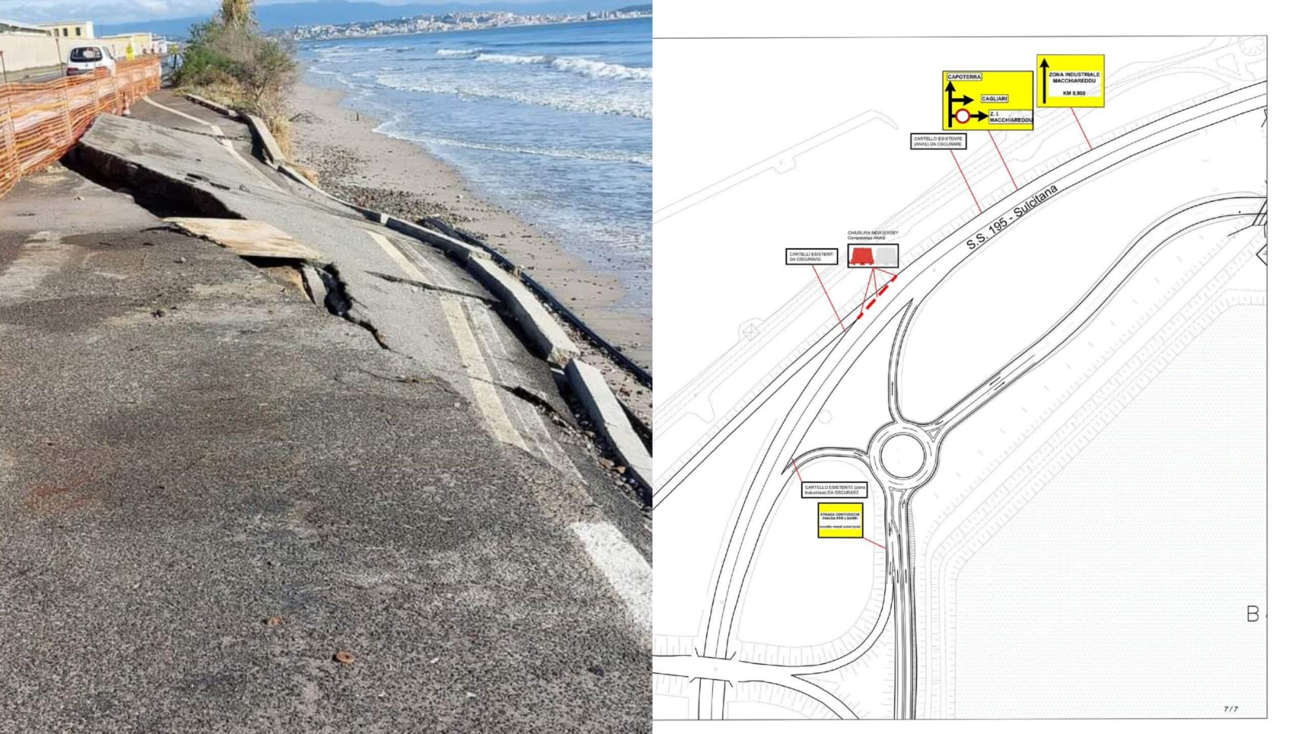“Lavori Anas che sarebbero dovuti iniziare a Giugno 2025 e terminare ad Ottobre, 4 mesi. I lavori sono iniziati due giorni fa senza nessun avviso per gli utenti. In particolar modo per i lavoratori di Macchiareddu e soprattutto per i Capoterresi. Con l’avvicinarsi delle piogge autunnali si corre il rischio che Capoterra, come successo nel 2018, resti isolata” spiegano i cittadini. “Siamo consapevoli delle condizioni precarie della carreggiata lato mare della SS 195 e dei ponti (logorate/i delle mareggiate), nel tratto tra la rotonda nell’incrocio con la Dorsale Consortile e la rotonda della Maddalena Spiaggia”.