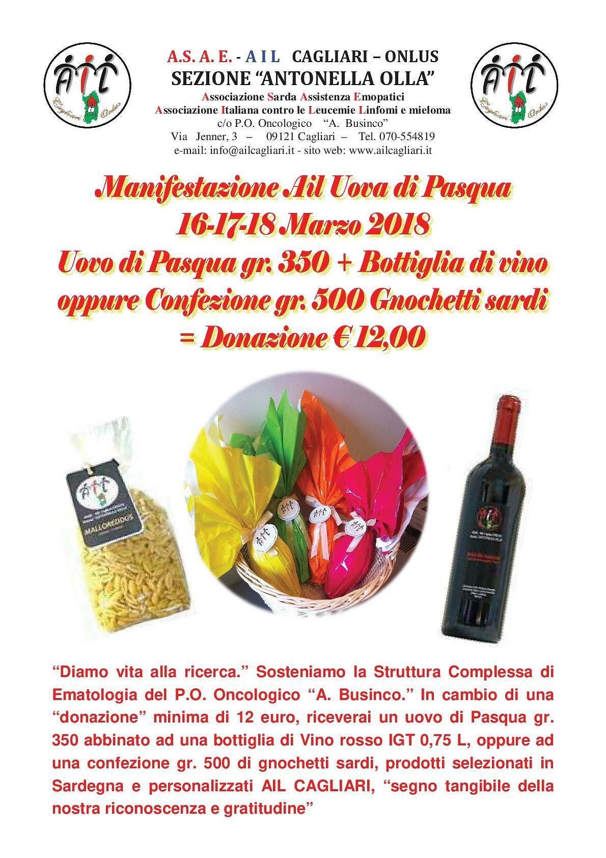 L’AIL, l’ associazione contro le leucemie, linfomi e mielomi organizza la manifestazione solidale Uova di pasqua 2018.