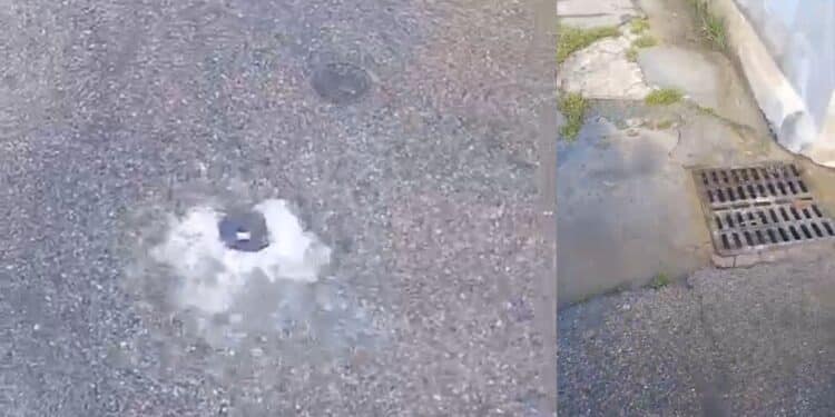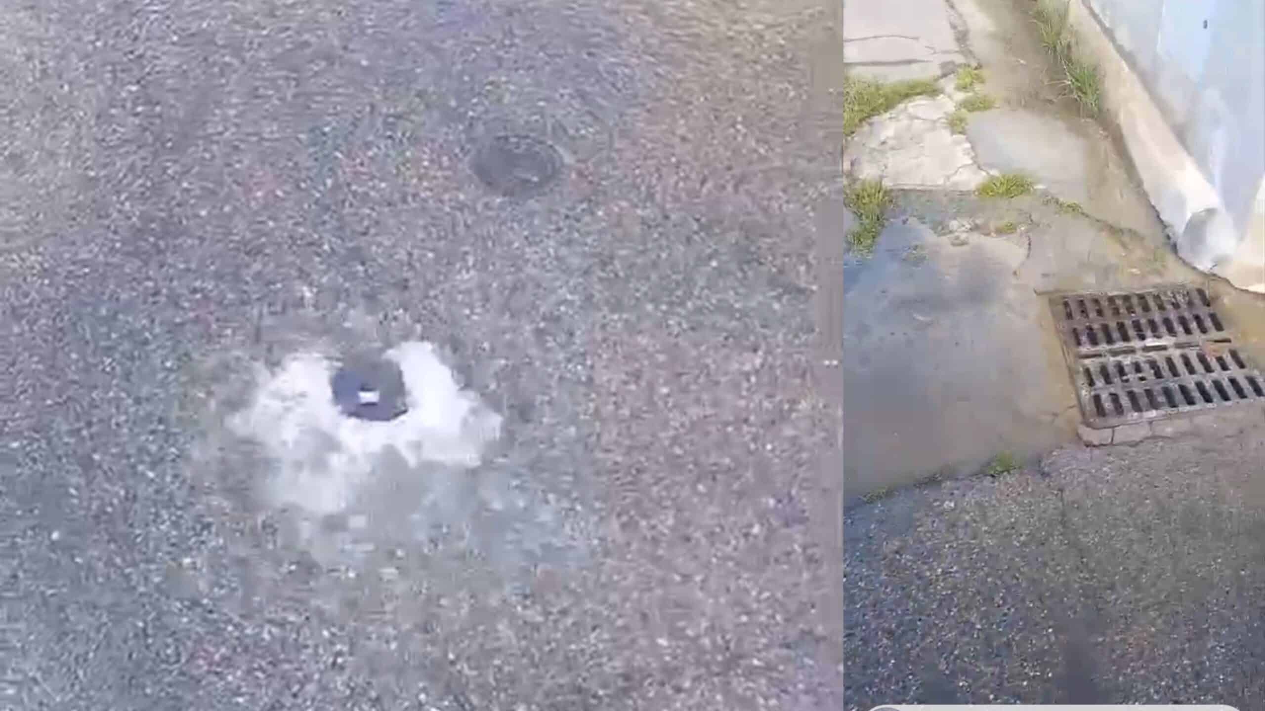 L’acqua zampilla riversandosi in strada, impossibile non notare la sorgente che sgorga dall’asfalto: