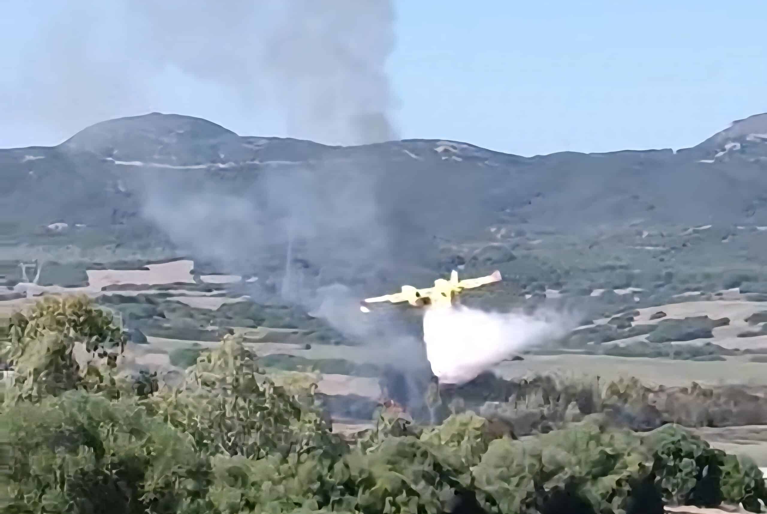 Le fiamme si sono estese presso la località Piolanas, al lavoro un canadair partito da Olbia che ha operato sino a quando il rogo è stato spento.
