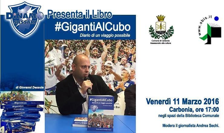 Venerdì 11, alle ore 17, presso la Biblioteca Comunale di Carbonia in viale Arsia (Parco Villa Sulcis), si terrà la presentazione del libro “GigantiAlCubo: diario di un viaggio possibile” di Giovanni Dessole. L’appuntamento è organizzato con il patrocinio del Comune di Carbonia e in collaborazione con il Sistema Bibliotecario Interurbano del Sulcis (SBIS). Durante la presentazione, condotta dal Giornalista Andrea Sechi. Sarà proiettato un video sui successi della squadra campione italiana di Basket Dinamo Banco di Sardegna. Il libro è scritto dal giornalista Giovanni Dessole, già addetto stampa della Dinamo e collaboratore della Gazzetta dello Sport e della Nuova Sardegna. La storia parte dal principio, ripercorre veloce i primi 50 anni di basket, di passione, di canestri e di rimbalzi del club, poi rallenta soffermandosi sull’anno incredibile in cui ha vinto i tre titoli italiani (Campionato, Coppa Italia e Super Coppa). Un diario di 312 pagine corredato da 296 fotografie a colori selezionate fra gli scatti del fotografo ufficiale Max Turrini e l’archivio del club: aneddoti, sensazioni ed emozioni si mescolano alle cronache e allo scorrere di un tempo scandito, costantemente, dal rimbalzo della palla sul parquet.