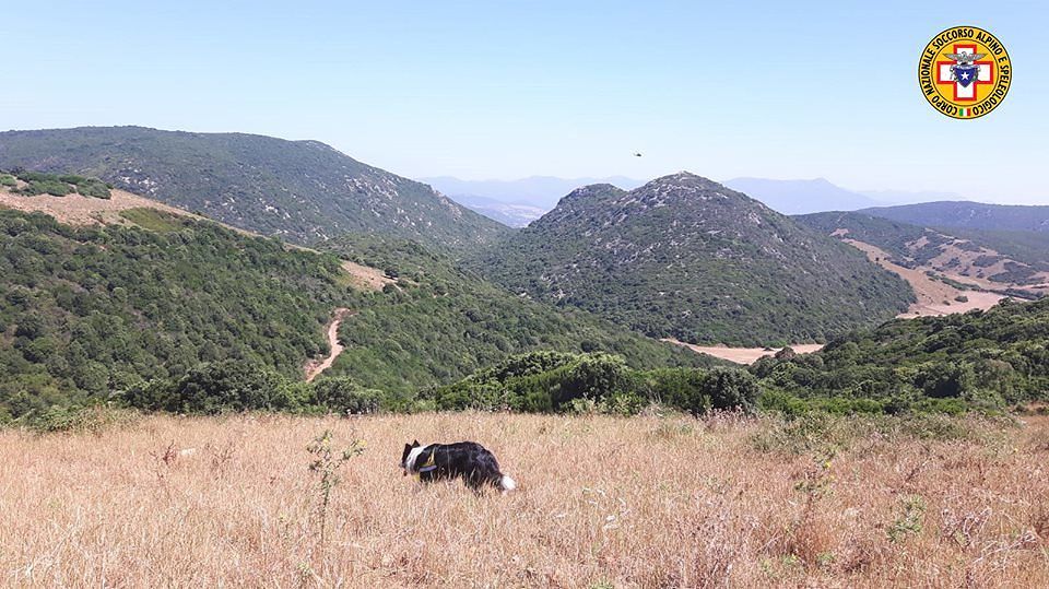 (foto soccorso alpino e speleologico della Sardegna durante le ricerche con l’ausilio dell’unità cinofila)