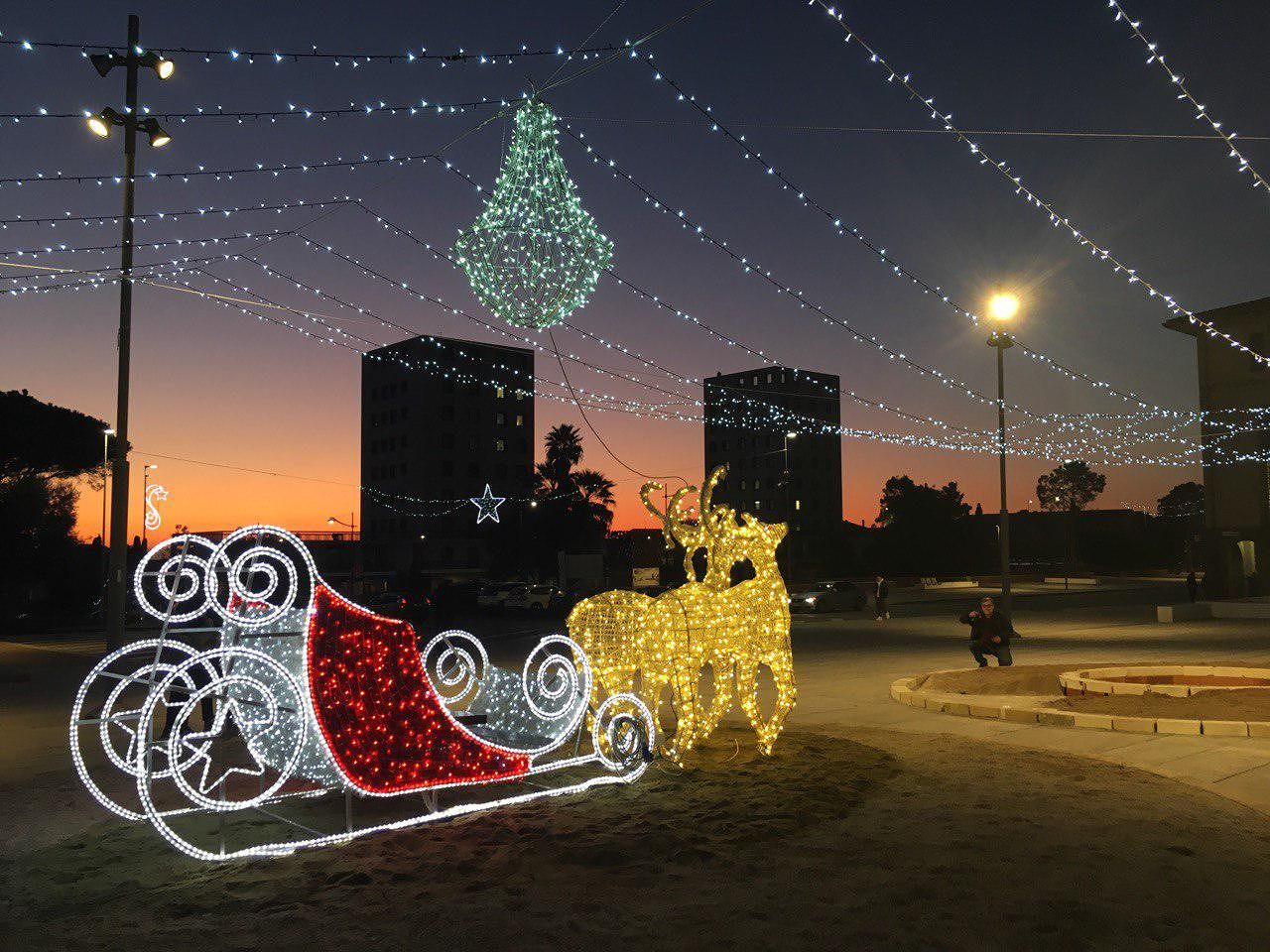 Non sono stati ancora ultimati gli addobbi e le creazioni natalizie in piazza Roma, eppure in pochi minuti la slitta di Babbo Natale e le due renne che la trasportano sono già state letteralmente prese d’assalto da concittadini e visitatori, che stanno immortalando i nuovi “abitanti” della piazza principale della città, scattandosi foto e selfie a bordo del mezzo di trasporto di Babbo Natale. E sì perché la vera attrattiva – soprattutto per i nostri bambini – è proprio questa, la possibilità di salire sulla slitta ed essere non solo spettatori ma anche artefici e protagonisti del Natale.