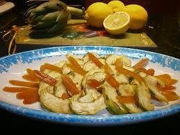 L’antipasto sardo che fa impazzire il mondo. Carciofi e bottarga 223 KCAL 13.4 P 5.72 G 16.58 elaborato da MENUTRIX Ingredienti a persona 1 carciofo e 20 g di bottarga: 3 carciofi intero 1 cucchiaio di olio extravergine d’oliva il succo di 1/2 limone sale q.b. In un piatto fondo versate l’olio, il succo del limone e il sale. Emulsionate con una forchetta fino ad ottenere una salsina cremosa, pulite i carciofi privandoli delle foglie esterne più dure e della “barbetta” interna. Tagliate a fettine regolari i cuori ottenuti e deponeteli nel piatto. Mischiateli accuratamente in modo che il limone eviti al carciofo di annerire. Disponeteli in una terrina e completate con fettine di bottarga.
