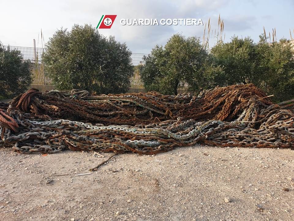 Solo nei giorni scorsi le operazioni sono state ultimate con il rilevante risultato del recupero di 10 ancore del peso di circa 300 kg ciascuna, 1.000 metri di catene dal peso complessivo di 5 tonnellate e un ammasso di reti intrecciate in cavo di nylon di vari diametri stimati in circa 8 tonnellate.