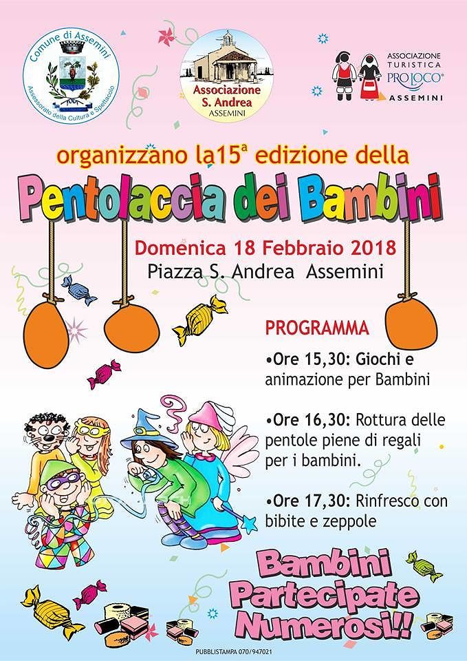 Anche quest’anno l’Associazione Sant’Andrea, in collaborazione con l’Assessorato della Cultura e Spettacolo, e l’Associazione Turistica Pro Loco, organizzano la “Pentolaccia dei bambini”.