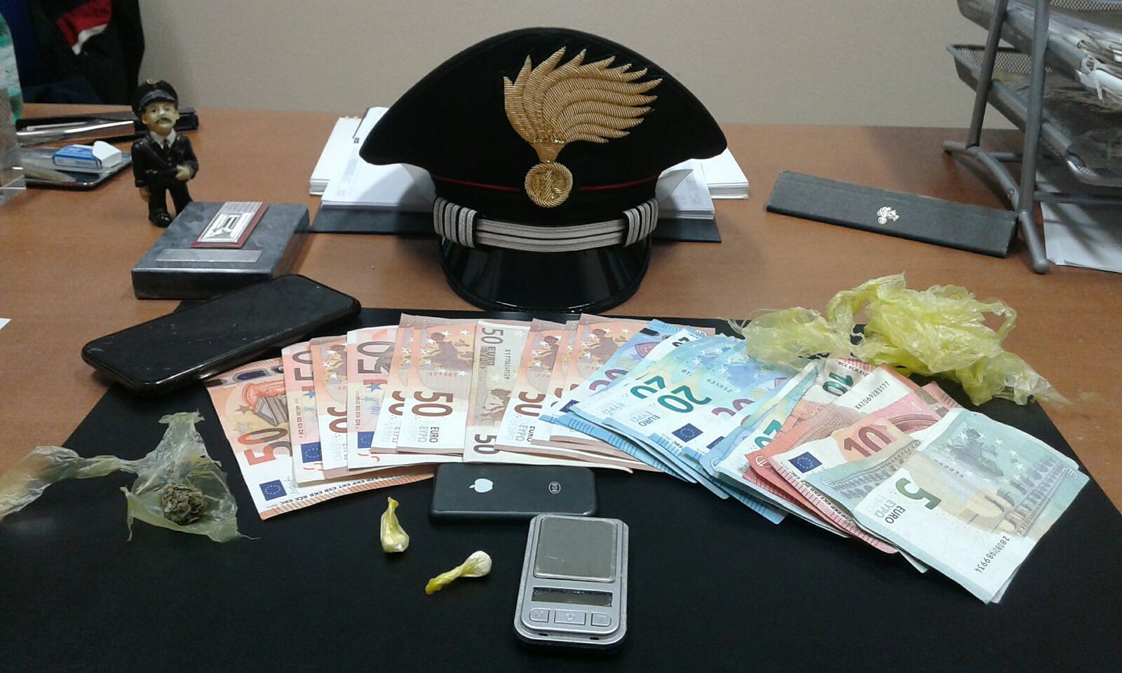 Da qualche giorno i militari avevano notato un sospetto via vai di persone presso una delle case del giovane e hanno deciso di vederci chiaro. A seguito di una perquisizione hanno quindi trovato alcune dosi di cocaina e marijuana, un bilancino di precisione, materiale per il confezionamento e 725 euro in banconote di vario taglio, provento dell’attività di spaccio.