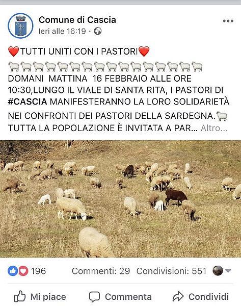 Read more"Tutti uniti con i pastori sardi", si legge nel profilo del comune di Cascia, in provincia di Perugia, dove oggi...
