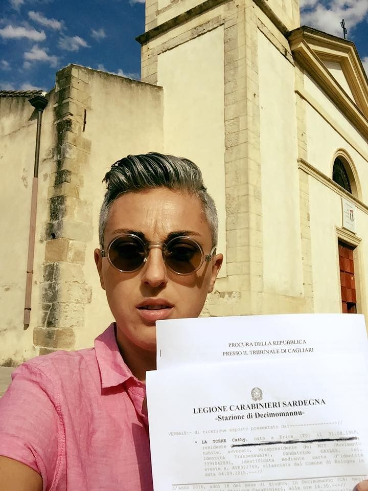 Una ragazza avvocata di Gay Lex parte da Bologna, arriva in Sardegna, va a Decimoputzu e denuncia don Massimiliano Pusceddu per associazione a delinquere. E si fa anche il selfie con la denuncia presentata ai carabinieri davanti alla chiesa del parroco anti gay, lo stesso prete che ha portato nei giorni scorsi 25 mila persone a chiedere al Papa di cacciarlo dalla Chiesa.