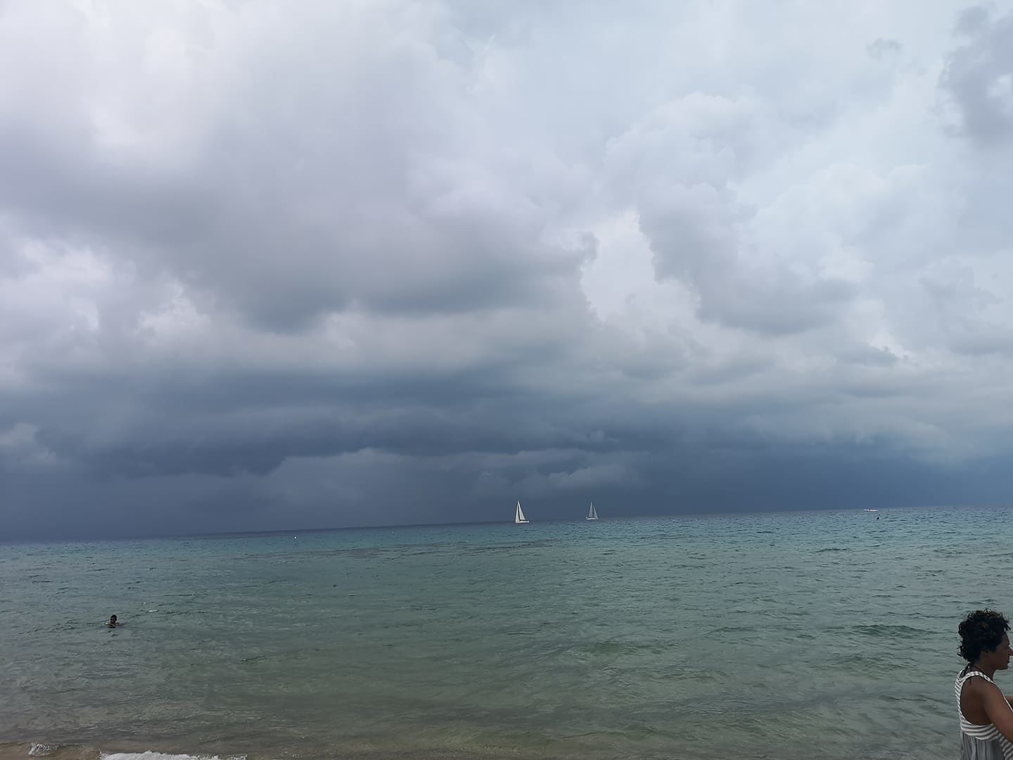 Chia, il bagno durante il temporale: il cielo scuro “spaventa” i turisti. Ecco la bella foto speditaci in diretta da Marina Loddo: c’è chi non rinuncia al tuffo sull’acqua calda, il cielo sopra una delle spiagge più belle della Sardegna diventa scuro di colpo, va in scena ancora una volta la fuga dalle spiagge. Stessa scena a Porto Corallo.