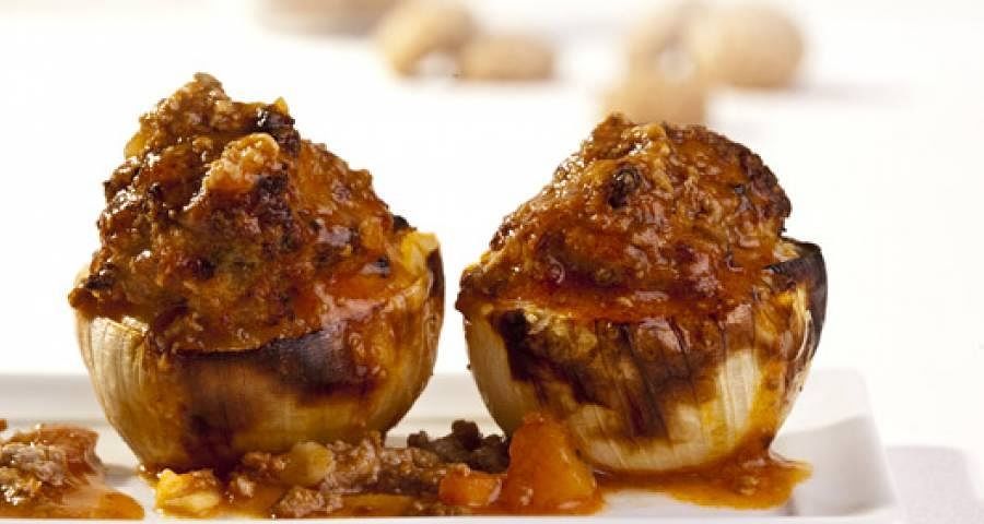 MANZO,L’UOVO E IL PARMIGIANO. AMALGAMARE E RIEMPIRE LE CIPOLLE. INFORNARE E COSPARGERE DI BURRO.
