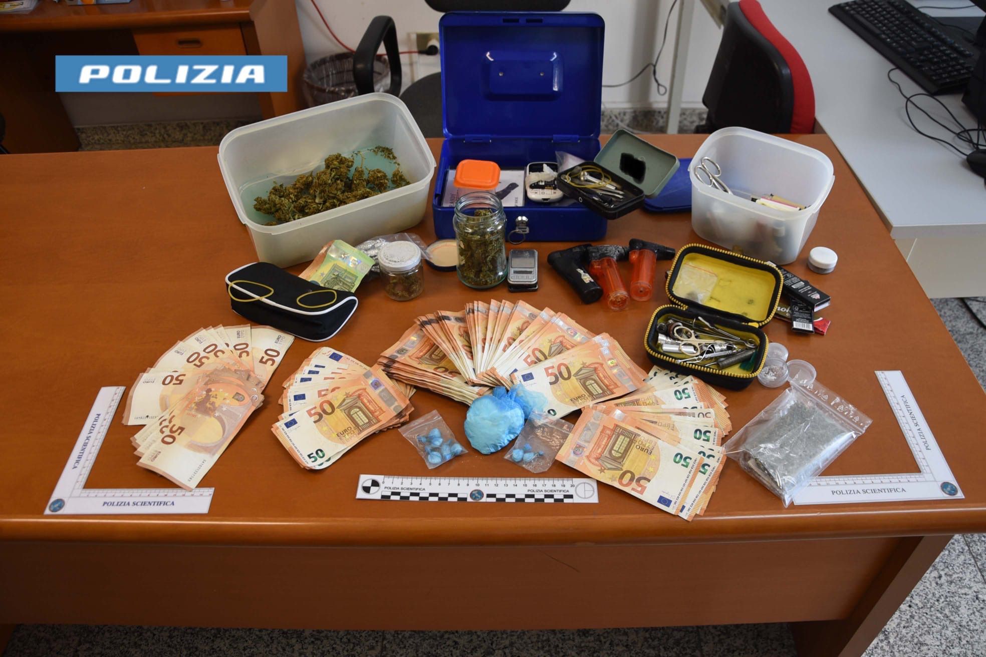 La Squadra Mobile della Questura, dopo alcuni servizi di osservazione effettuati nei pressi di una abitazione segnalata come luogo di spaccio, ha effettuato una perquisizione nei confronti del giovane, estesa poi anche al suo appartamento e ha trovato e sottoposto a sequestro penale circa 40 grammi di cocaina, parte della quale già suddivisa in dosi pronte per lo spaccio, circa 70 grammi di marijuana, 3 bilancini di precisione e tutto il materiale per il confezionamento dello stupefacente.