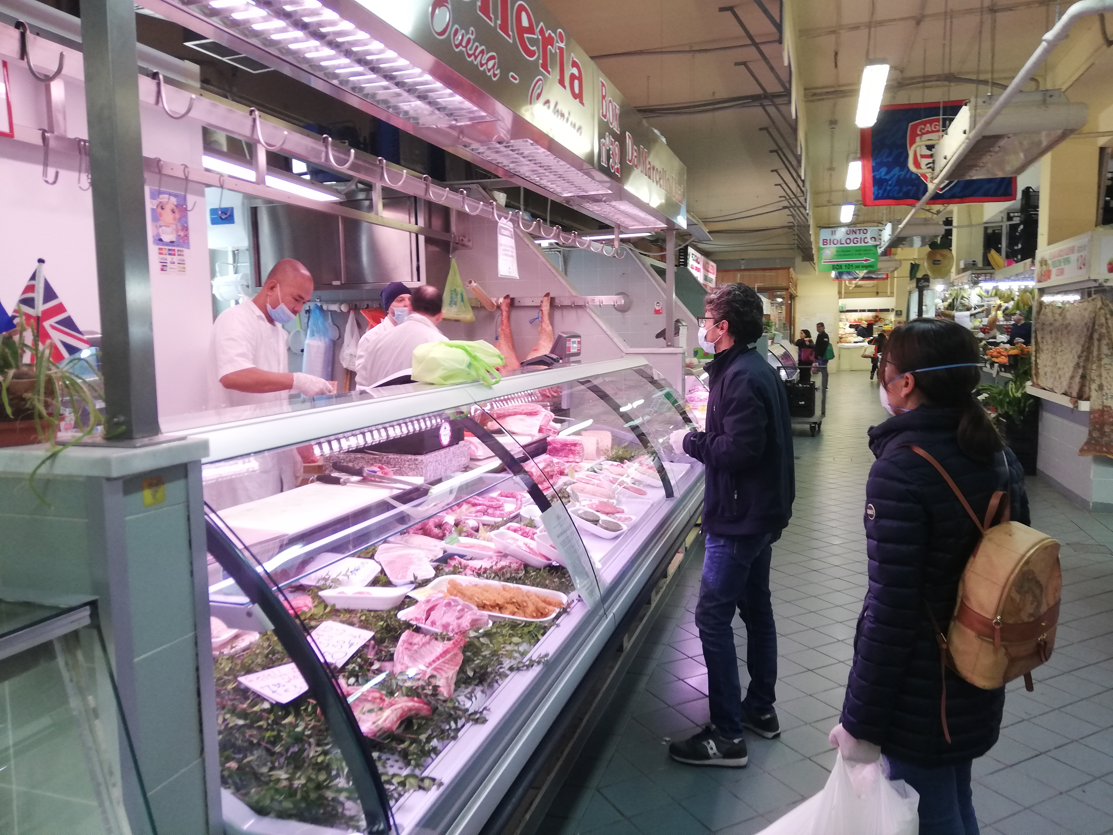 C’è il limite dei duecento ingressi al mercato cagliaritano di San Benedetto. Una nuova regola per evitare di creare assembramenti e fare il “gioco” del Coronavirus. Tuttavia, nel primo giorno con le nuove regole imposte dal Governo (tanti negozi e attività chiuse, su tutti bar e ristoranti) molti cagliaritani preferiscono tenersi a distanza dai box di carne, verdura e pesce. Alle nove del mattino sono appena 45 le persone indaffarate ad acquistare un chilo di pomodori, mezzo chilo di fettine o una decina di rosette. E, tanto i boxisti quanto i clienti, si proteggono con mascherine e guanti: quasi impossibile trovare qualcuno col volto scoperto. C’è anche chi si arrangia e si copre bocca e naso con foulard e sciarpe. Sopra qualche bancone c’è addirittura chi ha messo a disposizione boccette di amuchina o di semplice gel per le mani. Le precauzioni minime, insomma, sembrano essere garantite.