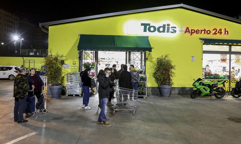 L’assalto ai supermarket aperti a orario continuato è il paradossale effetto del dpcm “zona protetta” varato dal governo per contenere l’epidemia di coronavirus. Poco dopo la conclusione della conferenza stampa del presidente del Consiglio Giuseppe Conte la gente si è riversata nei negozi per fare scorta di alimentari e acqua.