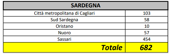 Sono 682 i casi totali di coronavirus in Sardegna, in incremento di 42 rispetto a ieri. Di questi 28 sono deceduti, 38 guariti. Ecco i contagi nelle varie province: se ne contano 103 nella città metropolitana di Cagliari, 52 nel sud Sardegna, 10 Oristano, 57 Nuoro, 455 a Sassari, il dato più preoccupante. Solo qui nella giornata di oggi si sono registrati 39 nuovi casi.
