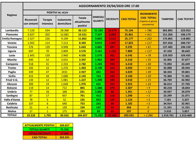 Nella tabella tutti i dati delle varie regioni.