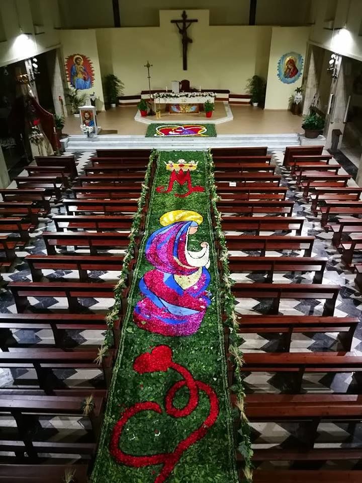 La coloratissima e spettacolare “infiorata” del Corpus Domini a Pirri, San Giuseppe, nella foto di Davide Loi. Una dedica alla Madonna, per la bellissima creazione che potrà essere visitata anche sino a stasera. Oltre cento i volontari in azione, dai giovani agli anziani, nel cuore di Pirri. Tante anche le associazioni in campo, a cominciare dalla Misericordia.