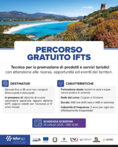 Il percorso è GRATUITO , finanziato dalla Regione Sardegna tramite due fondi europei principali: il Fondo Sociale Europeo Plus (FSE+) e il Fondo Just Transition Fund (JTF)
