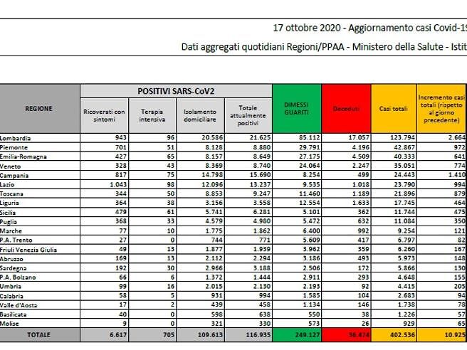 Covid boom in Italia, nuovo record di contagiati: oggi quasi 11mila, attesa per la stretta di Conte. I nuovi positivi sono 10.925 (ieri 10.010). I morti sono 47 in più. Aumentano di 67 unità i ricoveri nelle terapie intensive. Si tratta del numero di positivi più alto mai registrato in Italia, che ha superato il picco di ieri che a sua volta aveva superato il record di marzo. La situazione epidemiologica come si sa ora è diversa, gran parte dei contagiati sono asintomatici e gli ospedali non sono ancora pieni. Il governo va però verso un nuovo giro di vite sulla movida, che potrebbe essere annunciato già nelle prossime ore.
