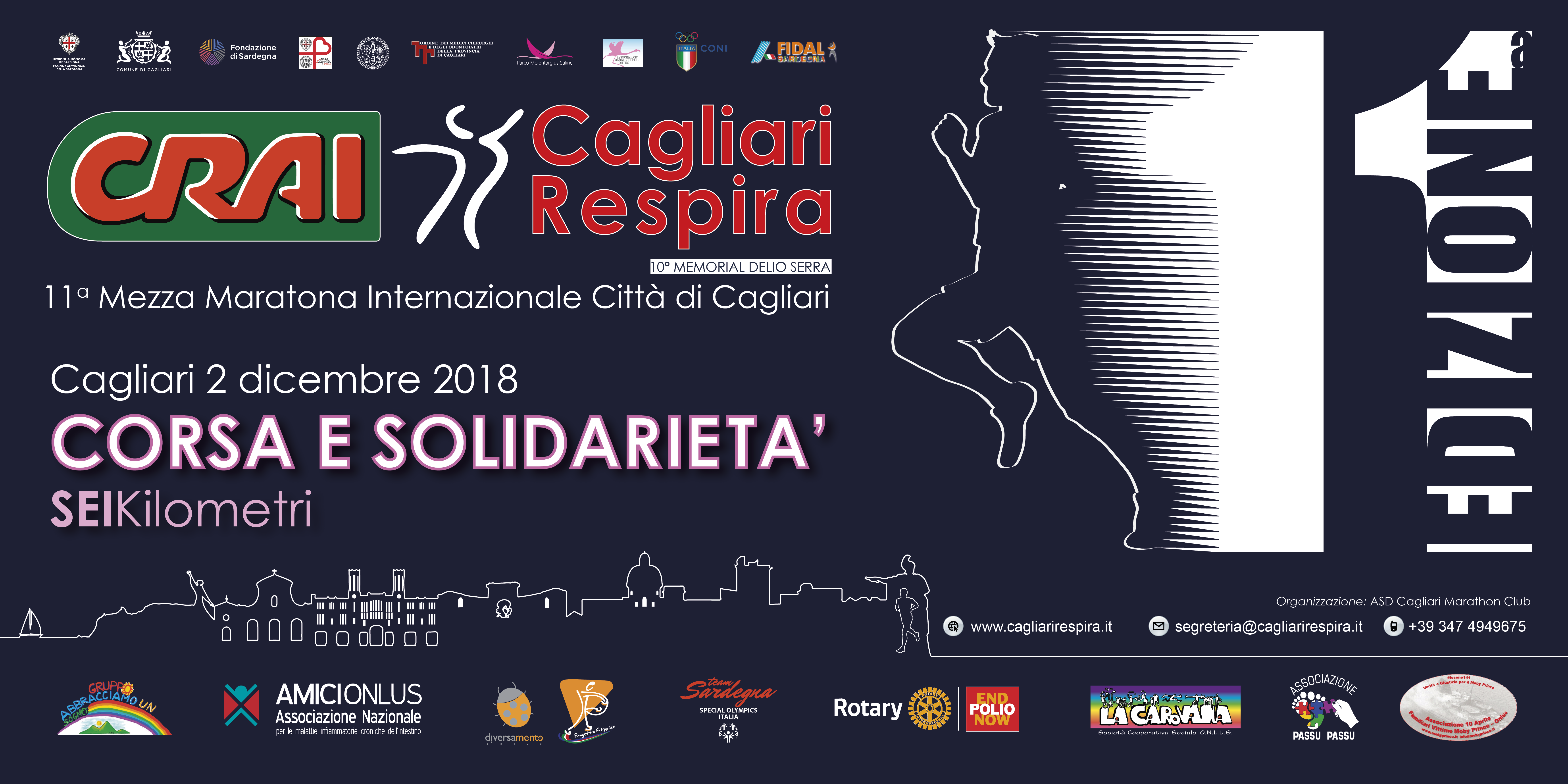 Manca meno di un mese all’undicesima edizione di CRAI CagliariRespira, l’evento organizzato dall’ASD Cagliari Marathon Club che ogni anno accoglie migliaia di atleti provenienti da ogni parte d’Italia e d’Europa. La manifestazione inizierà sabato 1 dicembre con le gare dedicate ai campioni del futuro: le KidsRun prevedono tre diverse distanze organizzate per fasce d’età: 400m, 800m e 1200m.Ma la festa vera e propria sarà dalle 10 di domenica 2 dicembre dove, oltre alla mezza maratona internazionale da 21,097km, ci saranno anche la KaralisRun 9.9 e laSeiKilometri non competitiva.