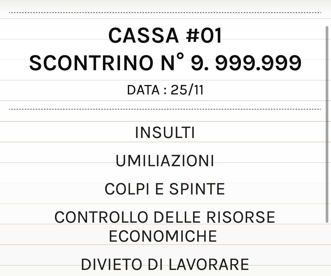 Dal I novembre infatti, nei punti vendita aderenti, gli scontrini “parlano” di rispetto e fanno riflettere su una forma di sopruso tra le più subdole, quella economica, meno conosciuta e spesso nascosta dietro gesti quotidiani e silenzi familiari.