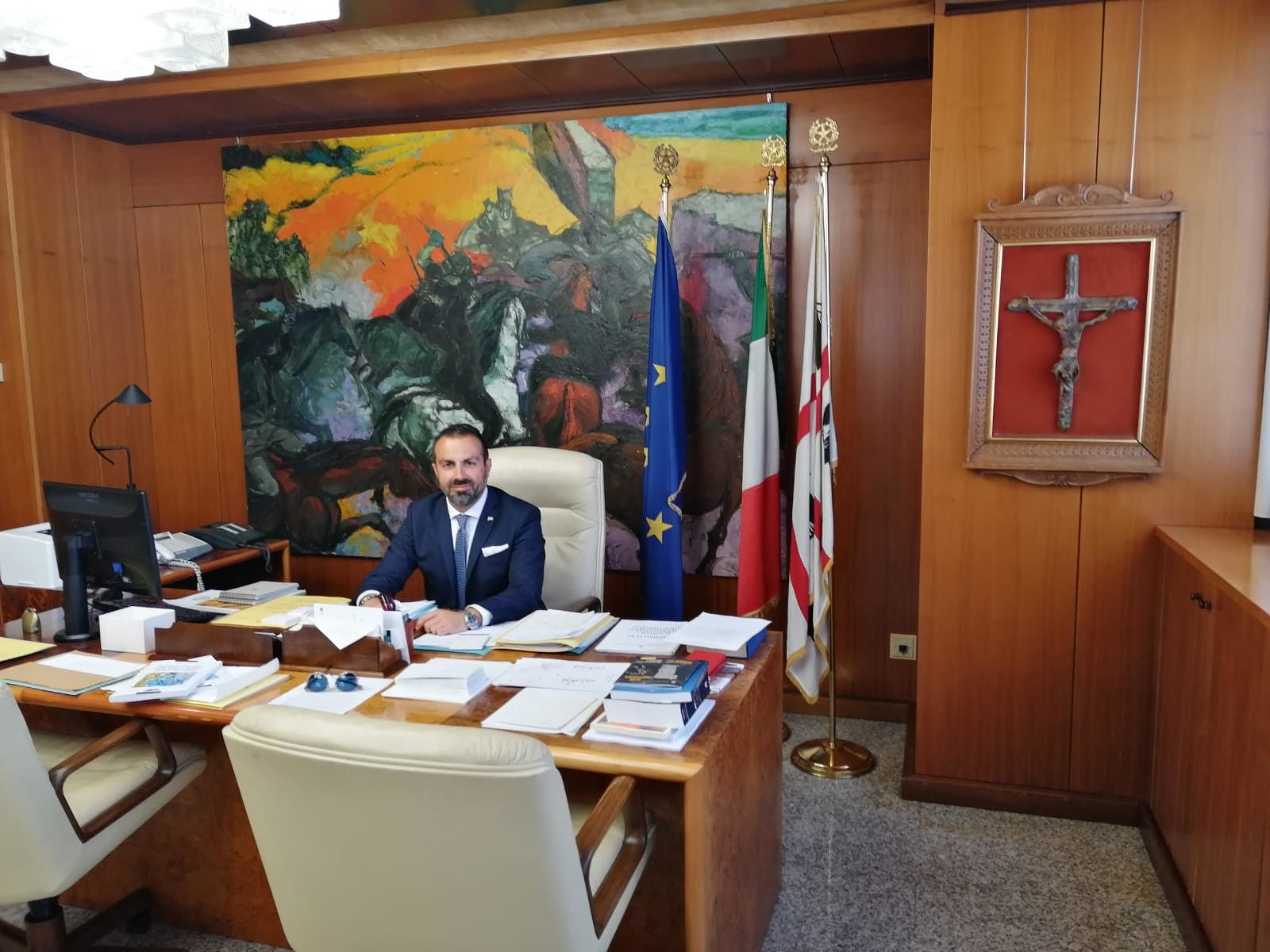 Il Presidente del Consiglio regionale Michele Pais ha voluto nella sua stanza, al Sesto piano del Palazzo di Via Roma, un crocifisso.