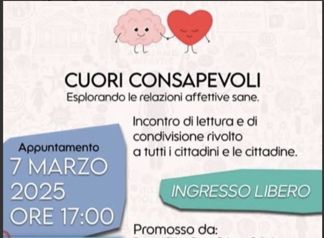 Cagliari, il 7 marzo alle ore 17:00, presso il centro culturale MuBe di via Carpaccio 14, si terrà l’iniziativa “Cuori Consapevoli”. L’evento è finalizzato esclusivamente alla formazione e all’educazione sul tema delle relazioni affettive. Così, Chiara Durzu, una delle promotrici, ha voluto precisare come l’appuntamento non sia collegato alle recenti problematiche sociali che stanno interessando il quartiere e non intende in alcun modo veicolare messaggi che possano essere confusi con gli attuali episodi di violenza. “Cuori Consapevoli” nasce con l’intento di offrire un momento di riflessione e approfondimento su un tema di grande rilevanza, senza entrare nel dibattito sulle questioni locali. L’iniziativa si propone quindi come un’occasione di crescita e confronto, con l’obiettivo di sensibilizzare i partecipanti sull’importanza di relazioni affettive sane e consapevoli.