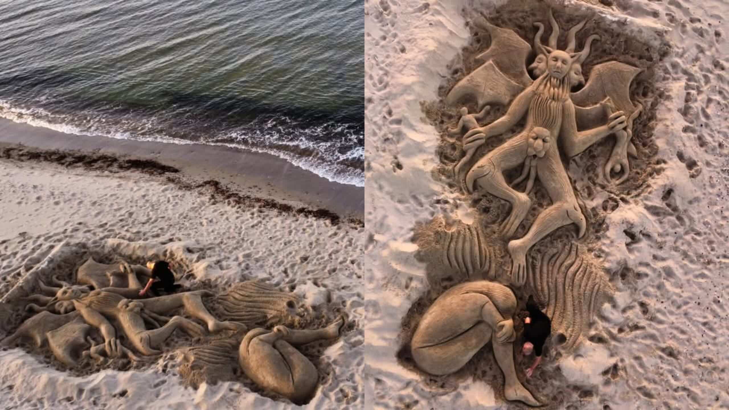 I demoni che dominano la scena e un corpo accovacciato su se stesso, inerme, indifeso innanzi a tanto male. Urru ha richiamato così l’episodio, ha mostrato la crudeltà dell’uomo espressa attraverso le fiamme che hanno divorato l’attività a due passi dal mare, quello di Porto Paglia, lontano dal litorale sassarese ma uniti, ora, grazie alla solidarietà, quella che scalda il cuore e alimenta la forza della donna a rialzarsi, più forte di prima.
