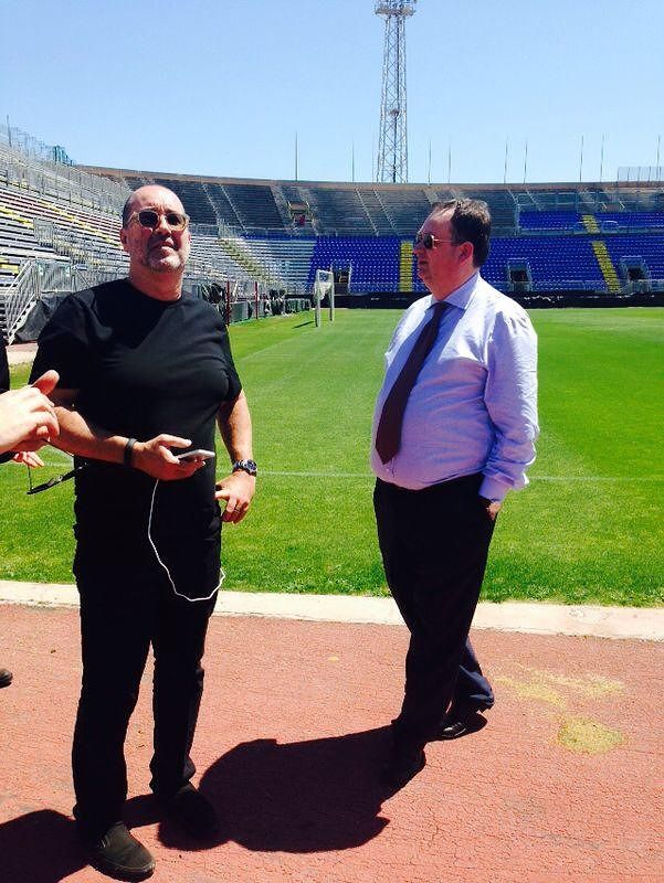 Cagliari, Dan Meis e Luca Silvestrone allo stadio Sant’Elia in vista dell’incontro di questo pomeriggio con il sindaco Zedda: al centro del dibattito il futuro dell’impianto sportivo cagliaritano. Accompagnato dall’emissario del gruppo Usa interessato a stadio e società, Silvestrone, l’archistar Dan Meis, incaricato dal gruppo statunitense a progettare il nuovo Sant’Elia, e lo stesso architetto che sta lavorando al nuovo stadio della Roma, ha fatto un tour nel patrimonio rossoblù, quello a cui gli americani sono interessati oltre alla squadra.