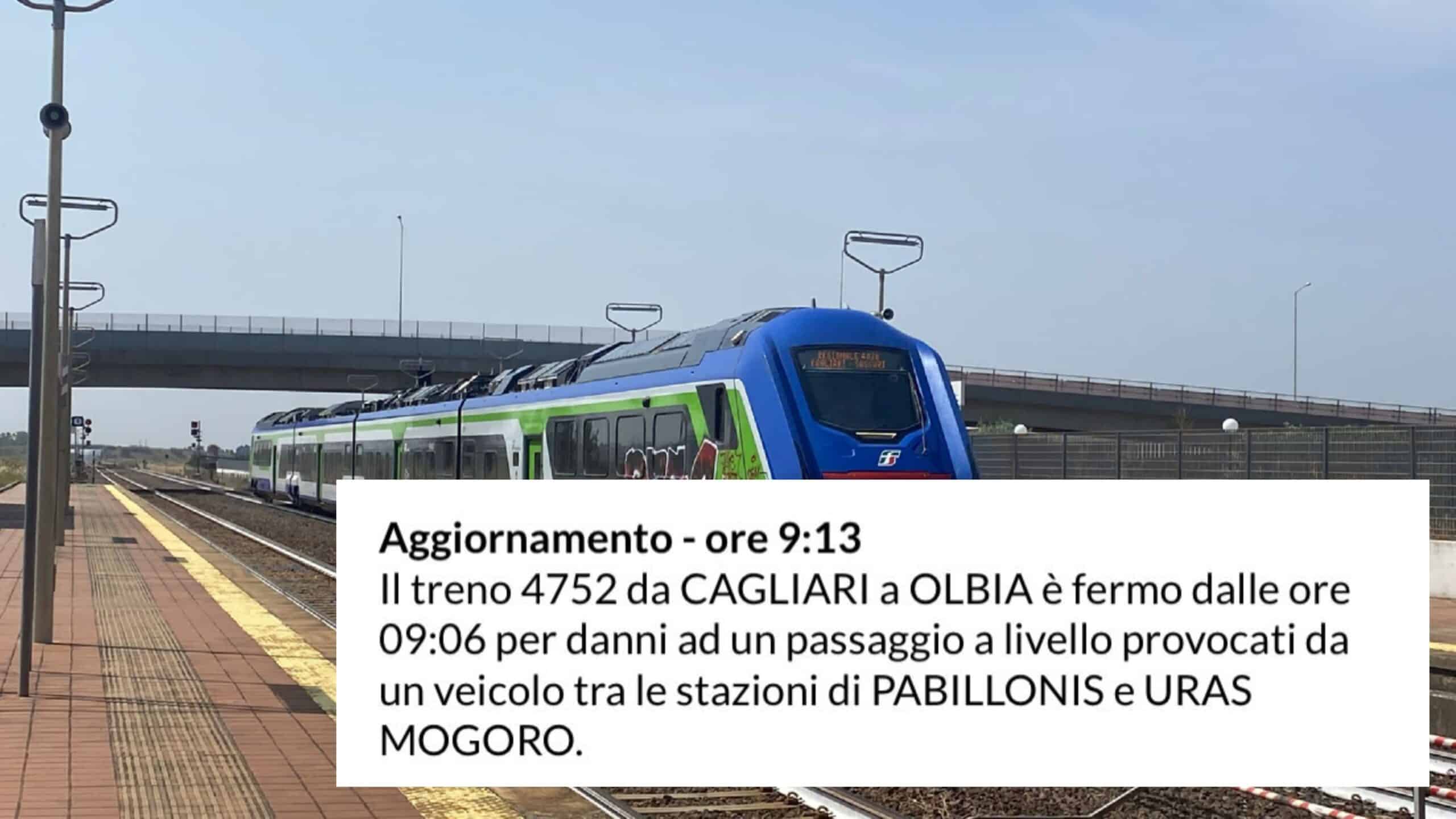 Un incidente senza particolari conseguenze quello avvenuto questa mattina in un passaggio a livello che è stato danneggiato da un veicolo. Per garantire la sicurezza di automobilisti e viaggiatori, i convogli in transito hanno subito diversi minuti di ritardo. In particolare, il treno 4752 da Cagliari a Olbia ha accumulato un ritardo di 40 minuti e il regionale 21229 diretto a Cagliari viaggia con circa 19 minuti di ritardo.