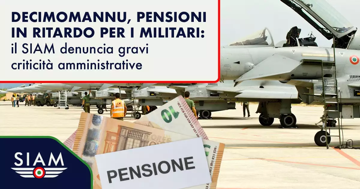 A Decimomannu si registrano ritardi nella lavorazione delle pratiche pensionistiche del personale militare dell’Aeronautica. A segnalarlo è il SIAM – Sindacato Aeronautica Militare, che ha inviato una comunicazione ai vertici della Forza Armata per evidenziare le criticità riscontrate.