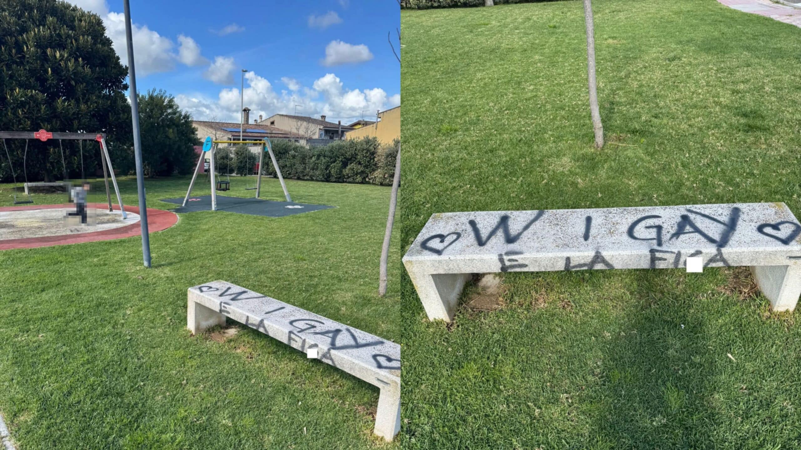 C’è chi la domenica la passa con la famiglia. C’è chi porta i bambini al parco. C’è chi approfitta della bella giornata per fare una passeggiata. E poi c’è chi prende una bomboletta spray e imbratta una panchina nell’area giochi della piazzetta di via Friuli.
