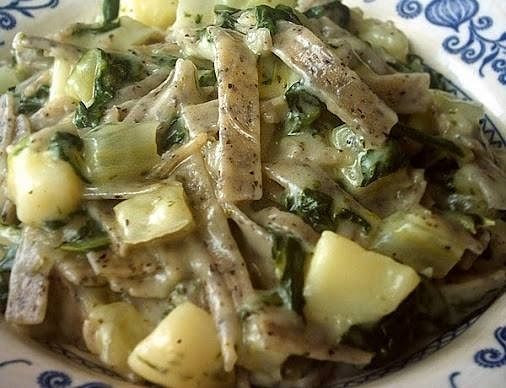 La grande cucina italiana su Casteddu On Line. Oggi siamo in Valtellina con i suoi PIZZOCCHERI 538 kcal 22,48 P 73,44 G 19,20 L (piatto tipico valtellinese) elaborato da MENUTRIX CALORIE NEI MENU PIZZOCCHERI 80 g PATATE 65 g CAVOLO VERZA 30 g LATTERIA 25 g PARMIGIANO 10 g BURRO – 5 g OLIO EXTRA VERG.DI OLIVA 5 g Preparazione CUOCERE I PIZZOCCHERI IN ABBONDANTE ACQUA SALATA CON LE VERDURE. SCOLARLI, AGGIUNGERE IL PARMIGIANO GRATTUGIATO E IL FORMAGGIO LATTERIA A FETTINE SOTTILI. IN UN PADELLINO SCALDARE L’OLIO E IL BURRO AROMATIZZATI CON AGLIO E SALVIA. VERSARE IL TUTTO SUI PIZZOCCHERI E SERVIRE BEN CALDO.