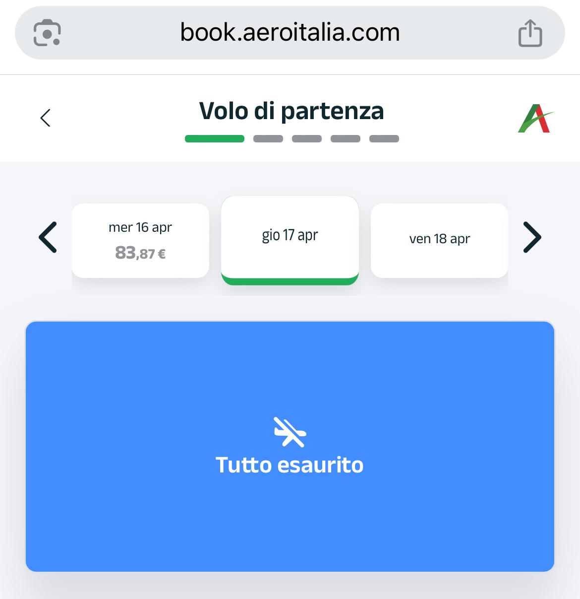 Proviamo su Cagliari, partendo da Milano: ultimo volo disponibile mercoledì 16 alle. Giovedì, venerdì e sabato zero voli fino alle 21 e alle 22 quando spuntano le prime disponibilità.